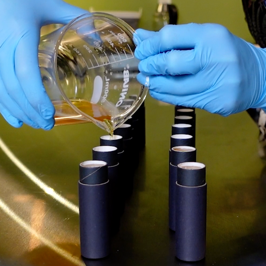 These tubes are crafted from a mix of 100% recycled paper and sustainably sourced FSC certified paper. They are made of matte black recycled paper and lined with vegetable wax. They are compostable, biodegradable, and recyclable. However please note that not all recycling facilities accept paper coated in vegetable wax, so contacting your waste authority is necessary to ensure the tube is ending up where you hope and not simply being thrown away!